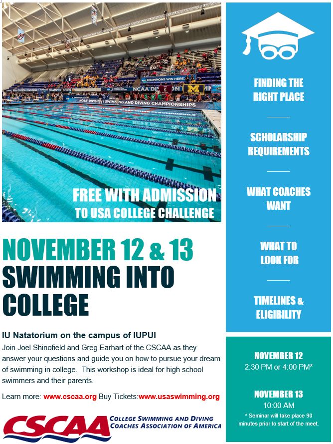 Looking to continue your swimming career in college? Overwhelmed by the options, rules and lack of information? Join the CSCAA’s Joel Shinofield and Greg Earhart at the USA College Challenge. The CSCAA Swimming into College Seminar will give you the tools to begin the journey. Best of all, its free with your ticket to the […]