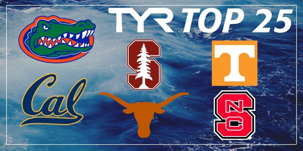 The second TYR Top 25 Division I poll is in the books . After two weeks worth of meets since the preseason poll was released (October 9), the committee saw enough evidence to keep the California men at number one. Also remaining in their preseason position are the Texas (2) and NC State (3) men. Missouri (4) and Indiana (5) climb into the top five. The Florida Gators moved into the top spot on the women’s side, after convincing road wins against Minnesota and Missouri. The Stanford women drop one spot to number two this week, while the Lady Vols made the largest climb from number 15 to number three after beating preseason #2, Virginia in Knoxville. Auburn and California take fourth and fifth on the women’s side.