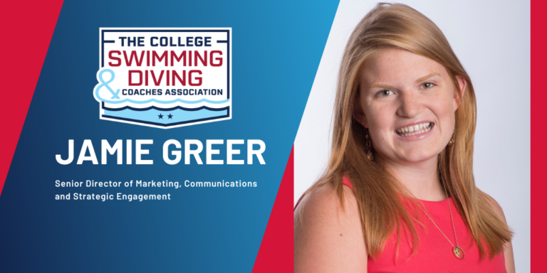 February 3, 2026 – The College Swimming & Diving Coaches Association of America (CSCAA) is pleased to announce the appointment of Jamie Greer as the organization’s new Senior Director of Marketing, Communications and Strategic Engagement.