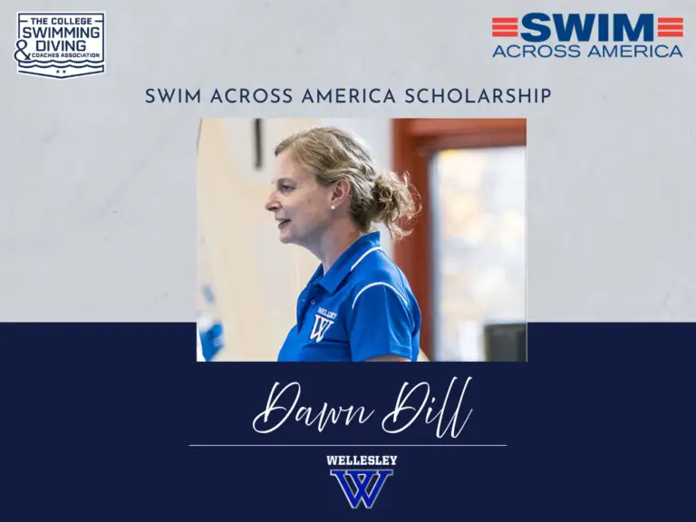 February 16, 2026 – The CSCAA is excited to announce that Wellesley Head Swimming and Diving Coach Dawn Dill has been named the recipient of the 2026 CSCAA Swim Across America Coach Academy Scholarship.