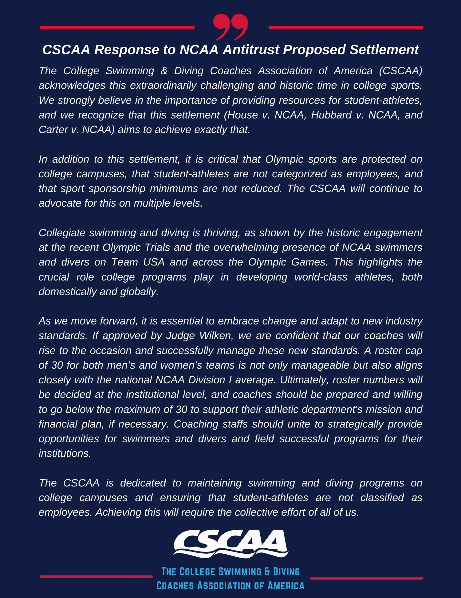 CSCAA Joins ICAC Efforts Urging Congress to Protect Olympic Sports on College Campuses October 30, 2024 Read More »