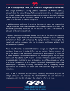 CSCAA Joins ICAC Efforts Urging Congress to Protect Olympic Sports on College Campuses August 23, 2024 Read More »